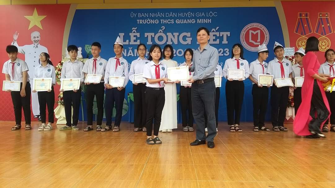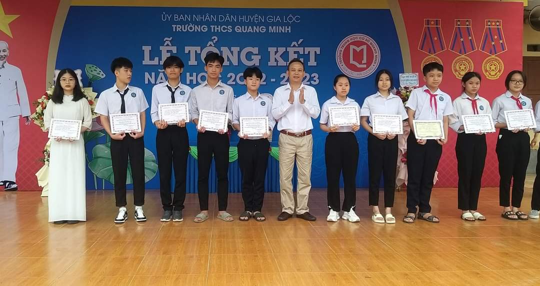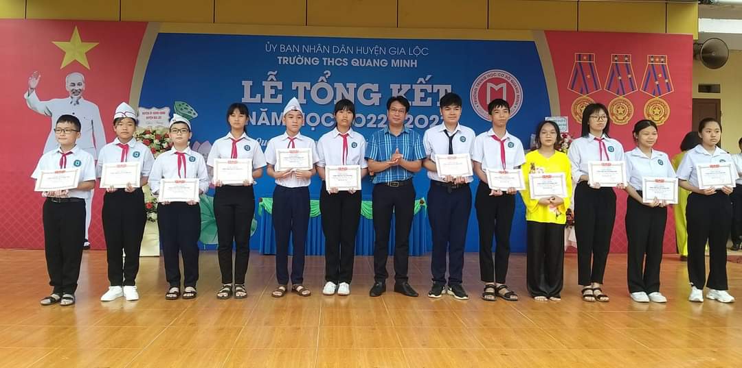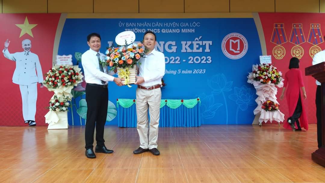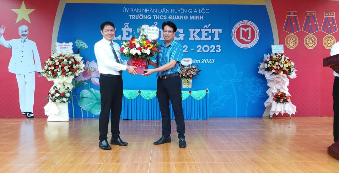 Ngày 25/5/2023, trường THCS Quang Minh long trọng tổ chức Lễ Tổng kết năm học 2022 - 2023. Về dự chia vui cùng với nhà trường có Đồng chí Vũ Văn Cấp - Phó Bí thư Thường trực Huyện uỷ, đồng chí Đỗ Thế Ngọc - HUV, Trưởng phòng giáo dục và đào tạo cùng các ông bà văn phòng Huyện uỷ, Ban Thường vụ Đảng uỷ xã, lãnh đạo UBND xã, các bậc cha mẹ học sinh cũng có mặt đông đủ.