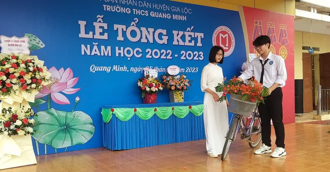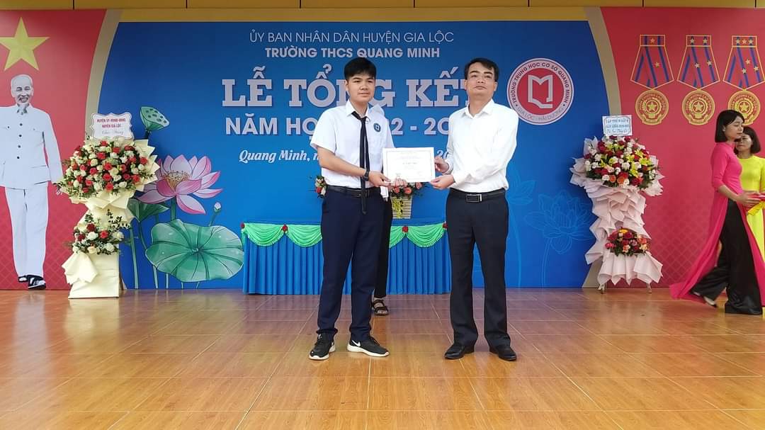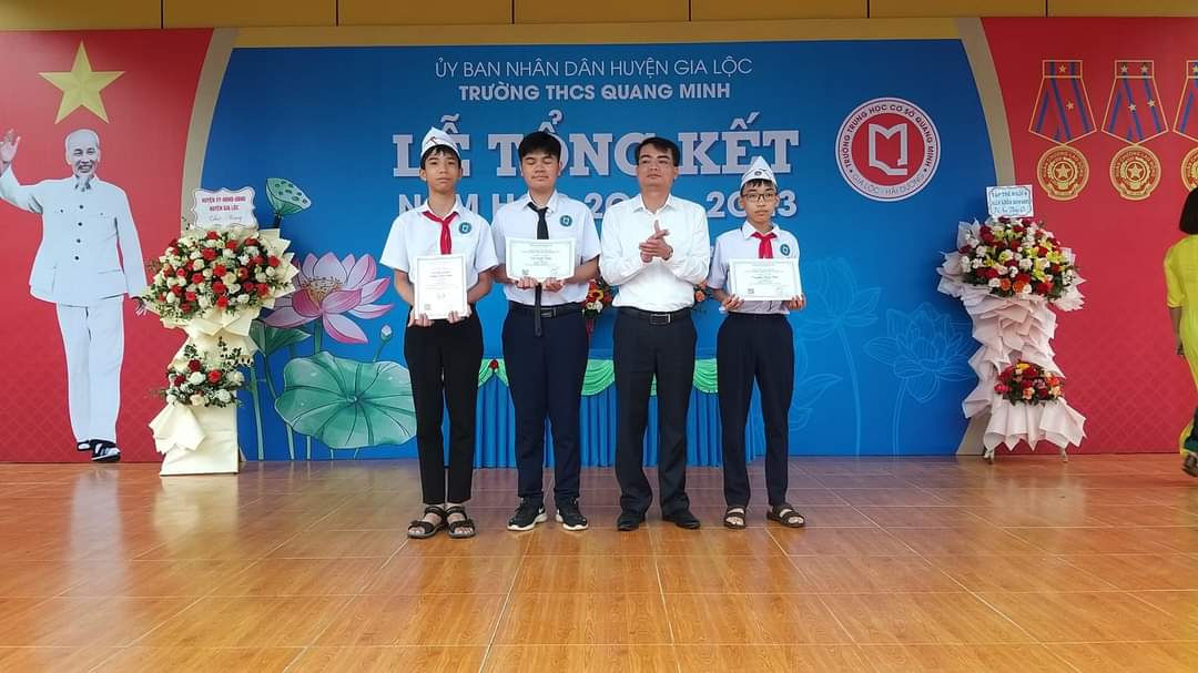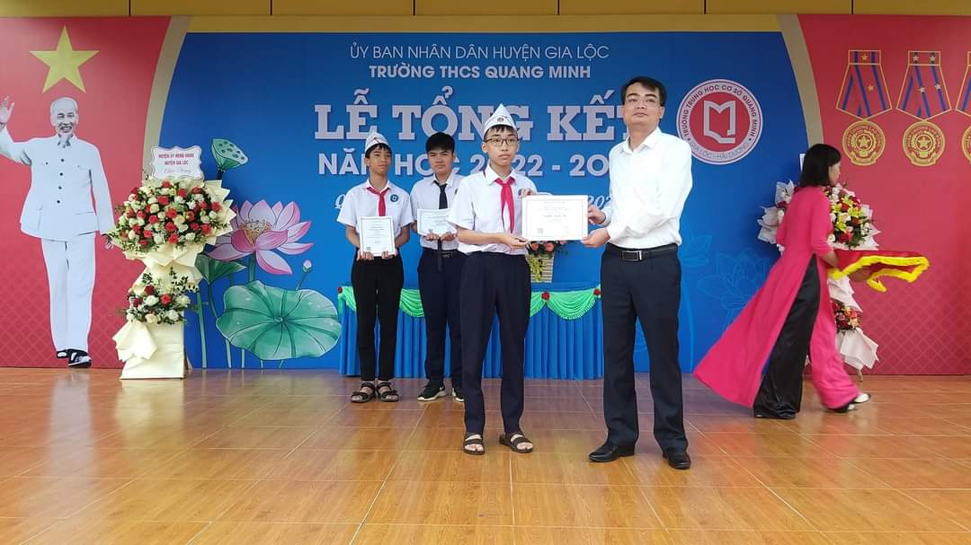 Buổi Lễ tổng kết năm 2022 - 2023 được diễn ra trong buổi sáng mùa hè mát dịu, những nụ cười rạng rỡ, những cánh phượng cháy đỏ và những bâng khuâng xúc động khi các em học sinh lớp 9 nói lời tri ân. Xin chúc các em học sinh có một mùa hè an toàn vui tươi, bổ ích. Đặc biệt, xin được nói lời tạm biệt với các em học sinh lớp 9 không tham gia kì thi tuyển sinh vào THPT. Chúc các em tìm được con đường đi phù hợp với năng lực của mình. Thầy tin rằng các em sẽ thành công trên con đường mà mình đã chọn. Đối với các em học sinh đang ôn thi vào THPT thầy chúc các em vững vàng, cố gắng để đạt được kết quả cao nhất trong kì thi vào THPT, bởi vì mọi sự nỗ lực luôn được đền đáp! Và mong rằng với tất cả các em học sinh lớp 9, mái trường THCS Quang Minh luôn đầy những kỉ niệm đẹp trong kí ức học trò.